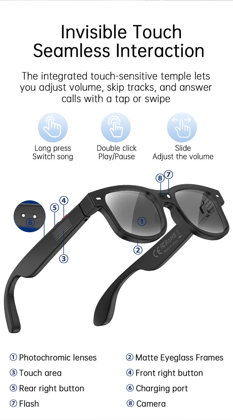 AI Smart Glasses RC-SG021 integrate photography, video recording,