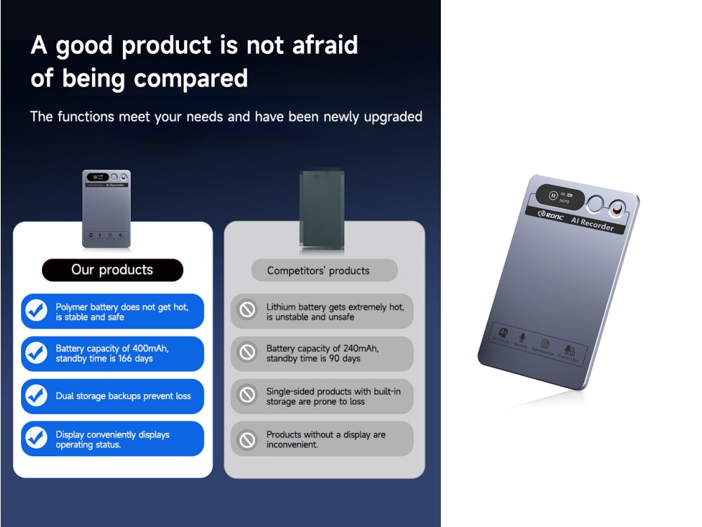At RONC, we offer a next-generation AI Voice Recorder designed for professionals and enterprises.Our recorder features:
